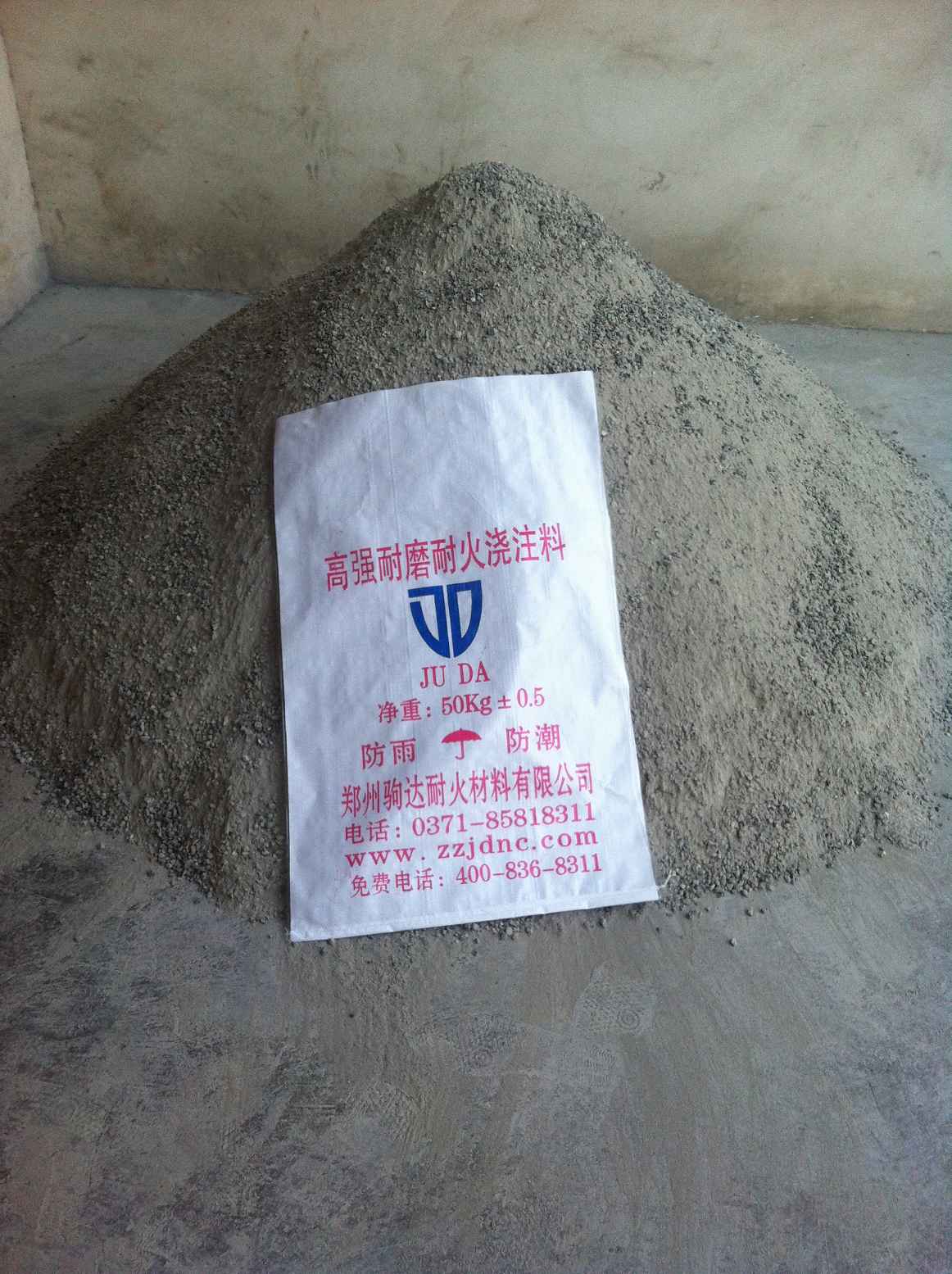 一種高強度耐火澆注料,由適當粒度,適當比例的高鋁骨料、高鋁粉、鋯英砂、剛玉粉和添加劑、結合劑等配制而成。使用時經干拌、水拌、澆注、自然養護、烘烤即成。本發明之澆注料,高溫強度、抗渣性、體積穩定性等主要技術指標優于現有澆注料,適用于1600℃以下的各種工業窯爐、熔煉爐等,尤其適合用于制做水泥窯爐之窯口、燒成帶等。