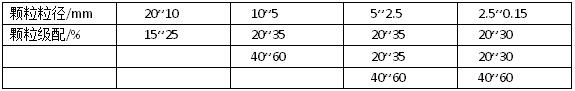 輕質(zhì)耐火澆注料的骨料級配,一般為連續(xù)級配,最大粒徑為20mm或10mm。近年來,輕質(zhì)耐火澆注料也作為耐火噴涂料使用,在耐火粉料和結(jié)合劑方面適當(dāng)調(diào)整用量,耐火骨料最大粒徑則用5mm。(表1)為輕質(zhì)磚砂的顆粒級配。從表中看出,一般粗骨料用量多,細(xì)骨料用量少,這樣可減少耐火粉料和結(jié)合劑的用量,從而降低耐火澆注料的體積密度和提高其性能。當(dāng)能達(dá)到耐火澆注料體積密度的要求時,其粗細(xì)骨料質(zhì)量比為50:50或40:60為宜。