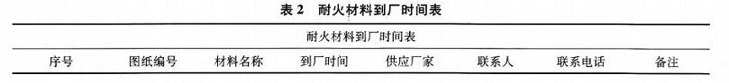 建設(shè)方在收到熔窯圖紙和耐火材料統(tǒng)計(jì)清單以后,要核實(shí)圖紙及材料清單的準(zhǔn)確性,分拆熔窯結(jié)構(gòu),清楚哪些耐火材料施工中會(huì)先使用,然后根據(jù)熔窯開(kāi)工時(shí)間和點(diǎn)火時(shí)間初步擬定出耐火材料到廠(chǎng)時(shí)間表,包含圖紙編號(hào)、材料名稱(chēng)、到廠(chǎng)時(shí)間、供應(yīng)廠(chǎng)家、聯(lián)系人、聯(lián)系電話(huà),并將耐火材料的到廠(chǎng)時(shí)間在耐火材料供應(yīng)合同中約定。