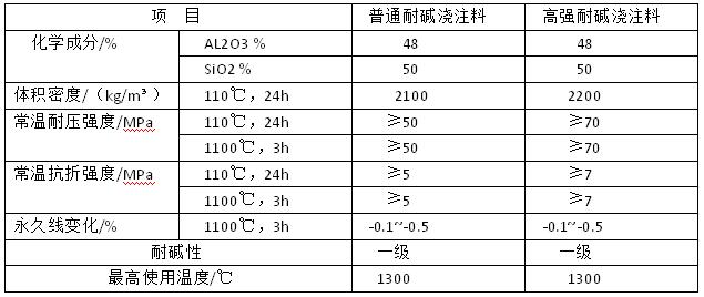 根據使用環境和條件不同,耐堿耐火澆注料有輕質和重質之分,氣孔率大于45%的為輕質耐堿澆注料,氣孔率小于45%的為重質耐堿澆注料。而重質的又可分為中溫耐堿澆注料和高溫耐堿澆注料。