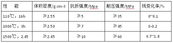 根據(jù)以上的檢測結果在實驗室選用河南當?shù)氐亩壍\土熟料做骨料,加入部分Sic及2%左右的Cr2O3進行反復試驗。研制的耐火澆注料的化學組成(%):AL2O3≥65,SiO2≥25, SiC ≥9,Cr2O3≤2,CaO ≤1,物理性能見表3.