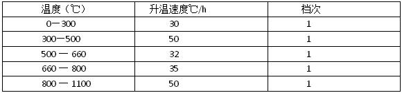 溫度升至1100℃時,加料化鐵,起用12檔,待料化青后,用14檔送點升溫,月40℃/hr。并在高溫燒結溫度1540~1560℃溫度2~3hr。