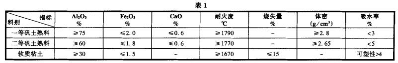 根據(jù)理論和實踐鄭州駒達耐火材料有限公司m.fangca.cn,采用一、二等高鋁礬土加入少量軟質粘土,能制得荷重軟化溫度和耐壓強度均較高的制品,并能提高制品的成型和燒結性能。原料技術指標如下表1: