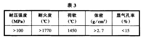 根據(jù)實際情況采用表2中的級配制品可達到表3的技術指標: