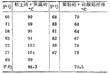 結(jié)論:(1)用高鋁聚輕磚代替粘土磚作爐門襯磚,使?fàn)t門外表溫度降低、減少散熱,年節(jié)約標(biāo)煤211噸,并改善了操作環(huán)境。