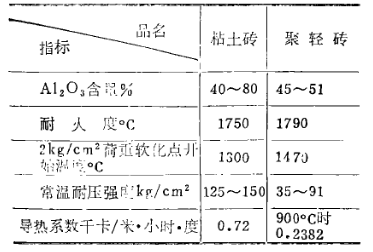 從表1所列兩種材質(zhì)的理化指標(biāo)可知,高鋁聚輕磚耐壓強(qiáng)度為35〜91kg/cm2,比粘土磚125〜150kg/cm2差得多,其它指標(biāo)都高于粘土磚。強(qiáng)度低成高鋁聚輕磚的最大弱點(diǎn)。而焦?fàn)t是連續(xù)作業(yè),每18小時(shí)開關(guān)一次爐門,頻繁的開關(guān)爐門增加了爐門襯磚的碰撞損壞機(jī)會。但焦?fàn)t爐門是直立爐門,其襯磚受爐內(nèi)煤、焦的壓力并不大,故就其強(qiáng)度作為爐門襯磚是足夠的,要注意的是在開關(guān)清掃爐門時(shí)防止碰撞損傷。