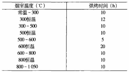 在更換窯磚超過20m,烘烤時升溫速度控制在20~30℃/h較為適宜;更換磚襯長度在20m以內時,烘烤升溫速度為40 - 50℃/h(換直接結合鎂鉻磚較多時取低值);停窯后燒成帶內仍保持300℃上溫度時可控制在125℃/h左右。