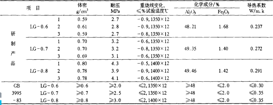 表2 隔熱耐火磚的配比