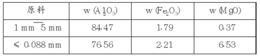 (1)從化驗(yàn)結(jié)果看,回收的顆粒料質(zhì)量良好,接近鋁礬土熟料特級品標(biāo)準(zhǔn)。這部分顆粒料完全可以用于同等檔次的耐火材料制品中,如用于鋼包澆注料、擋渣墻和高爐鐵口炮泥制品上均屬優(yōu)質(zhì)原料。