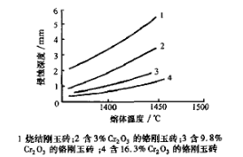 圖2示出了不同Cr203含量的鉻剛玉磚與剛玉磚被玻璃熔渣侵蝕的深度。試驗表明:Cr203<17%時,磚中Cr203含量愈高,玻璃熔渣侵入的深度愈淺。