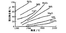 圖1各種耐火材料氧化物在熔融煤渣中的溶解度