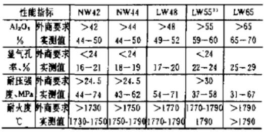 外商根據(jù)不同使用條件,要求研制NW42、NW44等牌號(hào)的粘土磚與LW48、LW55、LW65等牌號(hào)高鋁磚。質(zhì)量要求:
