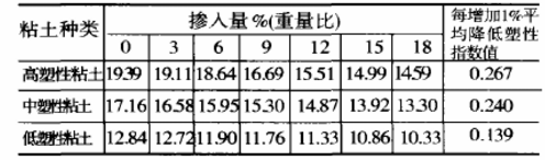 相同燃料摻入不同土質(zhì)對塑性指數(shù)的影響 表3
