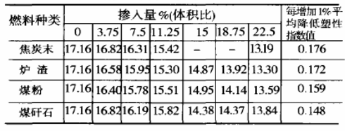 從上表試驗結(jié)果中可以看出如下規(guī)律:(1)隨燃料摻入量的增加,粘土塑性指數(shù)也隨之降低,兩者為反比關(guān)系。(2)塑性指數(shù)的降低率與粘土原有的塑性有關(guān),粘土塑性越高,則受摻入燃料的影響越大,即降低率越高。(3)塑性指數(shù)的降低率和燃料的種類有關(guān),燃料中的灰分越高影響越大。綜上所述,可塑性高的粘土,適合選用熱值低的燃料;反之塑性低的粘土宜選用熱值高的燃料,摻入燃料數(shù)量的多少是以熱值為依據(jù)的。因此,應對燃料進行認真地工業(yè)分析,隨時掌握進廠煤種的發(fā)熱量和波動范圍,從而及時調(diào)整配料制度。