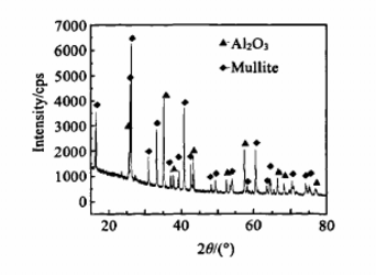 樣品主晶相為莫來石(80%),還含有少量的剛玉相(15%),玻璃相很少(5%左右)。大量莫來石相存在,使材料均有良好的耐高溫性能和抗熱震性能。剛玉相增強了材料的高溫耐火性能,提高材料的適用溫度范圍。少量玻璃相的存在,既有利于提高燒結(jié)驅(qū)動力,獲得致密的、室溫強度較髙的材料,又有利于使燒結(jié)后材料內(nèi)莫來石相和剛玉相形成高溫固相直接結(jié)合結(jié)構(gòu),對提高材料的高溫強度非常有利。