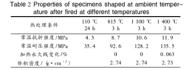 (1)硅溶膠結合剛玉-莫來石澆注料具有較高的烘干后強度和中高溫處理后強度,具有良好的抗熱震性。