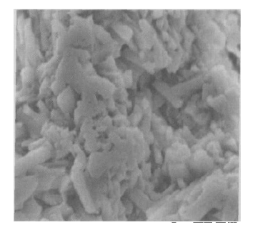 圖3是對試驗中性能好的試樣進行能譜分析、表明基質(zhì)中主要物相為莫來石,此外還有少量的鈣長石。莫來石呈針狀,交錯連接在一起。基質(zhì)組成中CaO、Al2O3和SiO2的含量滿足生成莫來石的條件,所以可以推斷在高溫時除了生成液相外,還有莫來石相存在。因為液相的出現(xiàn)溫度低于莫來石的生成溫度,所以在基質(zhì)中莫來石的生成應(yīng)該從液相中析晶。從圖4的顯微照片中可以看出試樣中生成了大量針狀莫來石晶體。