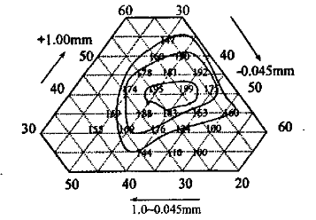 圖4為粒度組成與流動(dòng)值的關(guān)系。