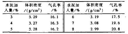表4 水泥加入量對(duì)體密和氣孔率的影響