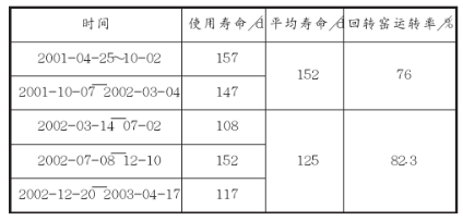 從表1~表3可以看出,2001~2002年窯口2~3.4m及過渡帶19.4~37.4m耐火磚使用壽命偏低,尤其是2002年耐火磚更換頻繁、使用壽命最低。
