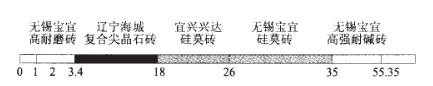2003年4月以來,在過渡帶改用抗壓強度高、熱震穩(wěn)定性高的硅莫磚,改用后使用壽命明顯提高,新配磚方案見圖2。