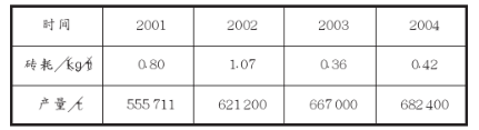 表7 2001年~2004年窯單位熟料磚耗及熟料產(chǎn)量