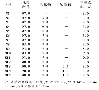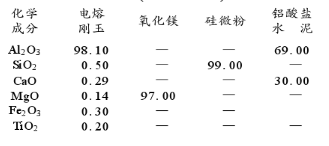 實驗原料采用電熔剛玉、氧化鎂、硅微粉和鋁酸鹽水泥,其化學成分見表1。
