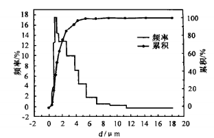 實驗用活性α-Al2O3為國內某企業生產,其中位徑DV50=1.68um,比表面積為1.3m2·g-1,粒度累積分布見圖1。