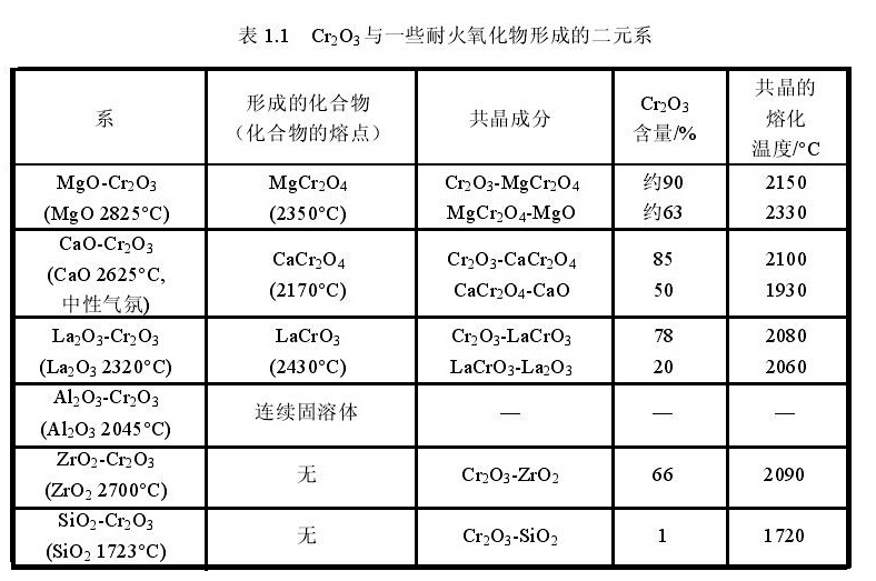 高溫下Cr2O3在與一些主要耐火氧化物形成的二元系中,它們所形成的化合物熔點較高以及形成的低共熔點溫度高,所以Cr2O3稱為耐火材料的重要原料和添加劑。