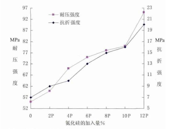 二:試驗結(jié)果與討論氮化物細(xì)粉加入量對澆注料性能的影響