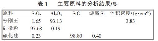試驗(yàn)所使用的原料是以棕剛玉為骨料,碳化硅、水泥、uf-SiO2、α-Al2O3 為基質(zhì),主要原料的分析結(jié)果如表1所示。