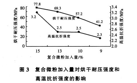 3.3 復(fù)合微粉加入量對強(qiáng)度的影響