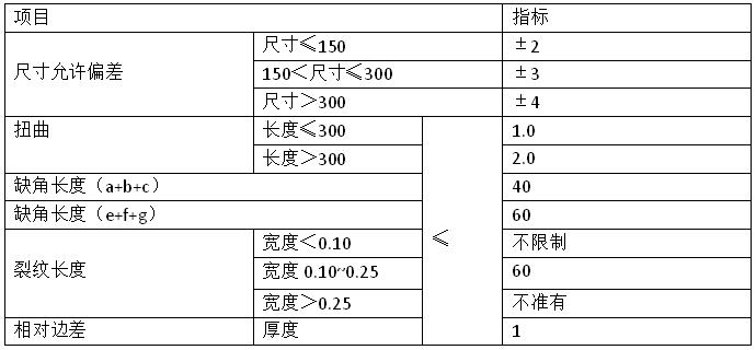 4.2 活性石灰回轉(zhuǎn)窯用不燒磷酸鹽磚的尺寸偏差及外觀應(yīng)符合表2的規(guī)定