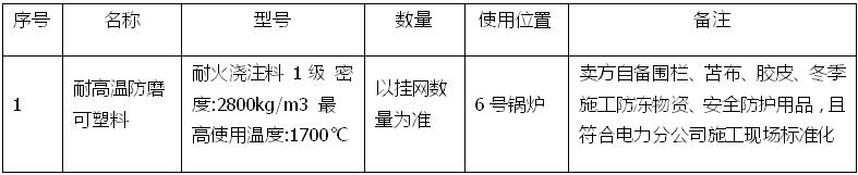 ③ 耐高溫防磨可塑料所用攪拌工器具、架桿、焊機(jī)等由賣方自行安排,所有電氣工具經(jīng)驗(yàn)收合格方可使用,如良好的接地等。