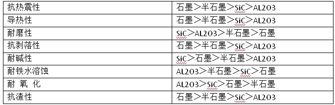 碳化硅爐眼磚的優(yōu)點材質(zhì)選擇及其性能:按出鐵口的特性要求,對常用的幾種耐火材料進(jìn)行比較如下: