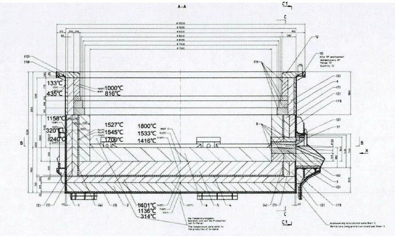 根據(jù)上圖,工業(yè)硅爐襯在正常生產(chǎn)時(shí),其中心熔池反應(yīng)溫度高達(dá)2000℃以上;爐底及爐墻側(cè)部炭磚溫度達(dá)到1800℃左右,經(jīng)過(guò)熱傳導(dǎo),傳遞到接觸碳素材料部位的耐火磚表面的溫度均達(dá)到了1550℃(如果爐膛參數(shù)設(shè)計(jì)不合理或超溫超負(fù)荷的情況下溫度會(huì)更高),傳統(tǒng)的爐襯材料設(shè)計(jì)為:爐墻從外到內(nèi)分別為;絕緣石棉板、保溫層、高鋁磚、碳磚。傳統(tǒng)的爐襯材料配置里高鋁磚受高溫及熱力的條件下極容易變形軟化,導(dǎo)致熔池區(qū)域的碳素材料隨之變形拉開縫隙,最后導(dǎo)致高溫硅水從碳素材料縫隙漏出形成穿爐事故。