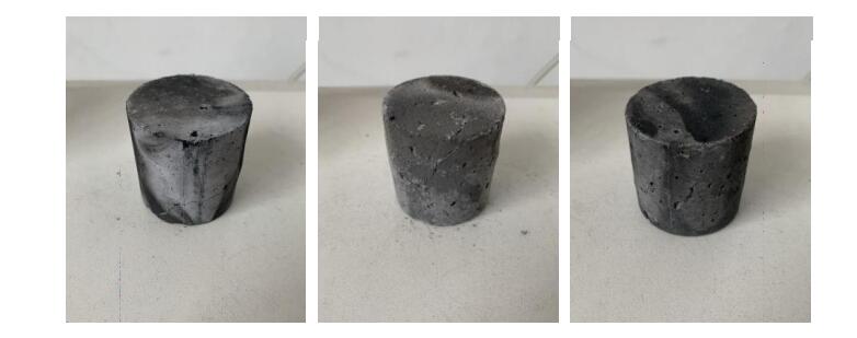 分析認為,不同于純H2還原,在混合氣氛下,耐火材料的受損程度取決于還原反應與滲碳反應的共同作用,耐火材料中的Fe2O3會與H2和CO反應,被還原成FeO和單質Fe,進一步催化CO發生析碳反應析出碳(2CO(g)→CO2(g)+C(s)),CO在制品表面及內部(通過氣孔進入)發生歧化反應,產生碳沉積,碳沉積伴隨大量的體積膨脹導致耐火材料的結構受到嚴重破損,進而嚴重影響到耐火材料的相關服役性能。這也是導致含CO還原氣氛下耐火材料性能下降更為明顯的主要原因。如圖所示,被還原后的高鋁澆注料試樣出現部分破損開裂的現象也證實了這一點。